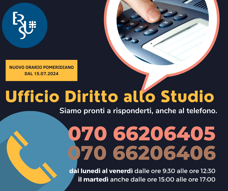 Si comunica agli studenti e alle studentesse titolari di posto alloggio nelle residenze universitarie dell’ERSU di Cagliari che, dalla data odierna, è attivo il servizio “SportelloAscolto”, gestito dalla Dott.ssa A. Mariangela Aroffo.